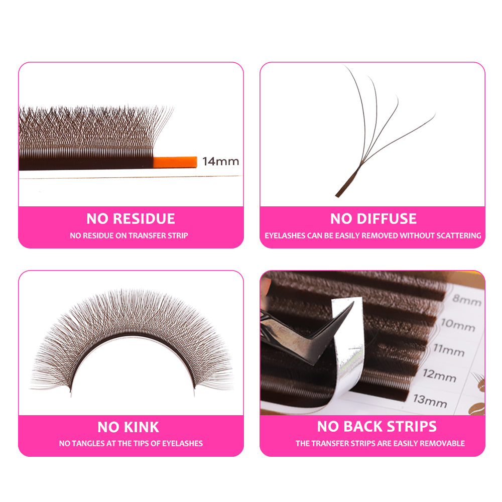 Easy Fanning Clusters – Advanced pre-made fans with multiple lash roots bonded into blooming clusters for effortless, time-saving application. Ideal for dense, voluminous looks.